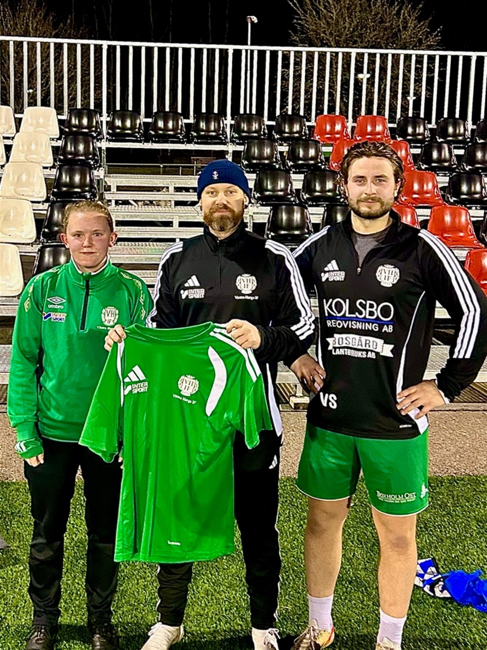Alexander Eriksson tillsammans med Matilda Hermansson, senioransvarig, och Vilgot Strand, sportchef herr.